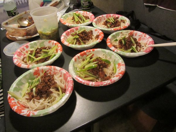 宵夜:台灣味炸醬麵和醃黃瓜及冬瓜排骨湯